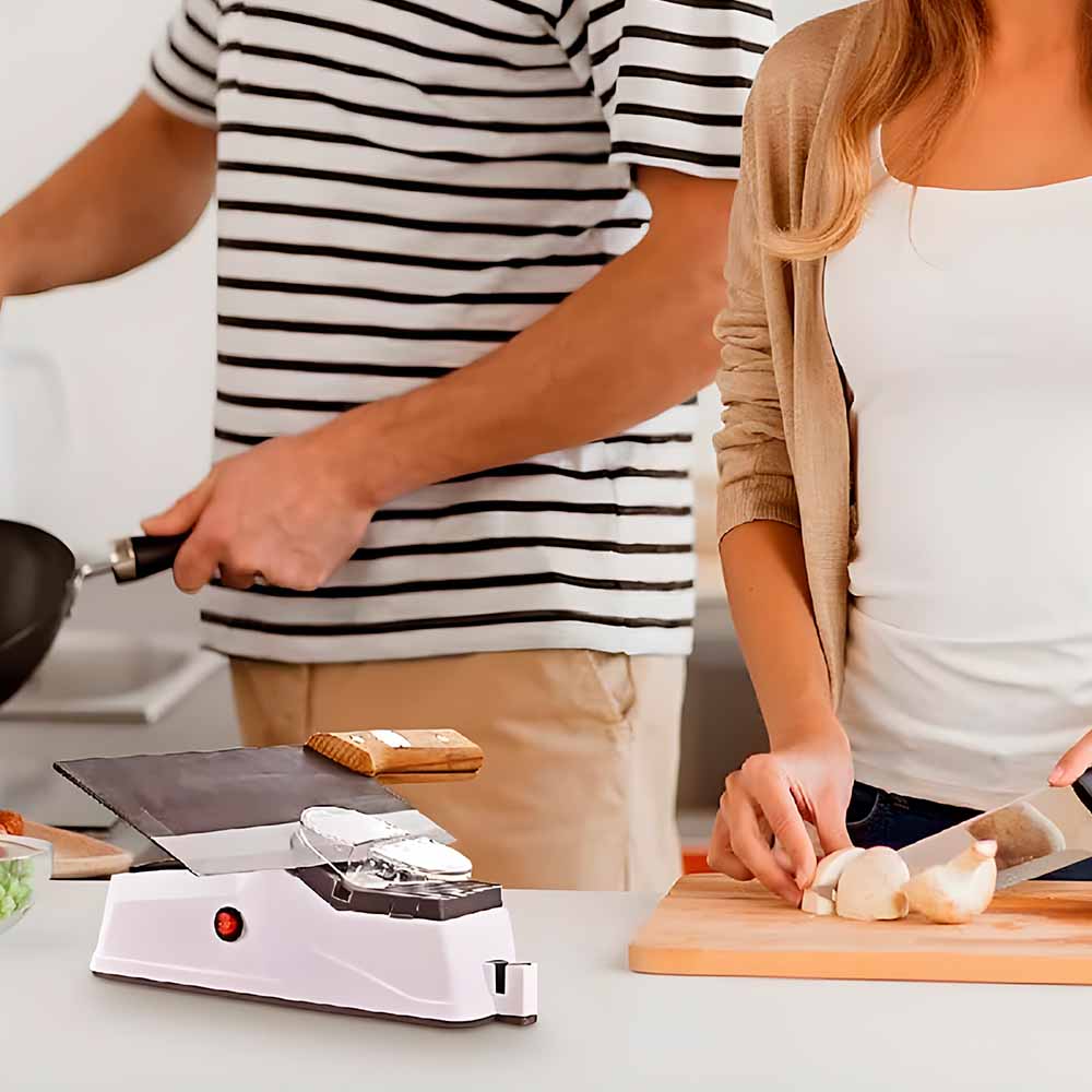 No solo afila cuchillos, sino también tijeras, destornilladores y otros utensilios con filo, ofreciendo una solución completa en un solo dispositivo.