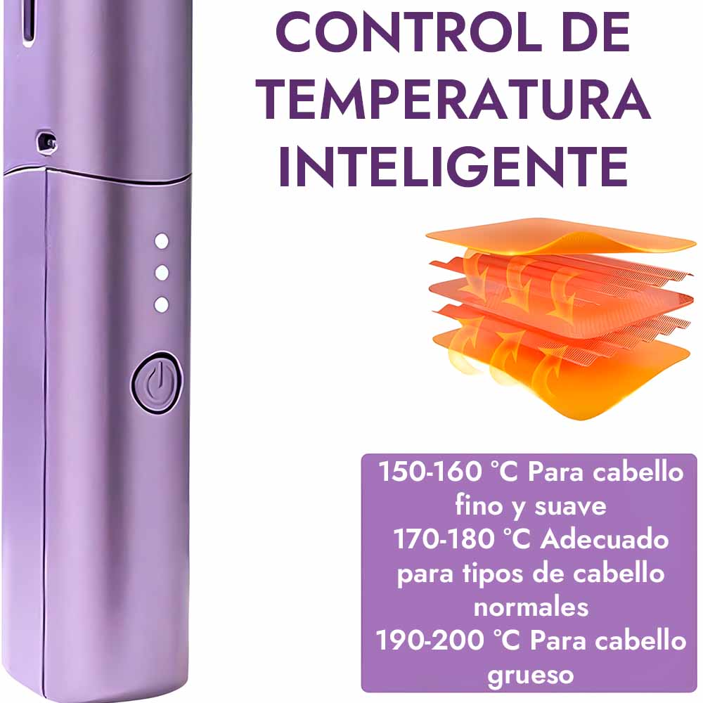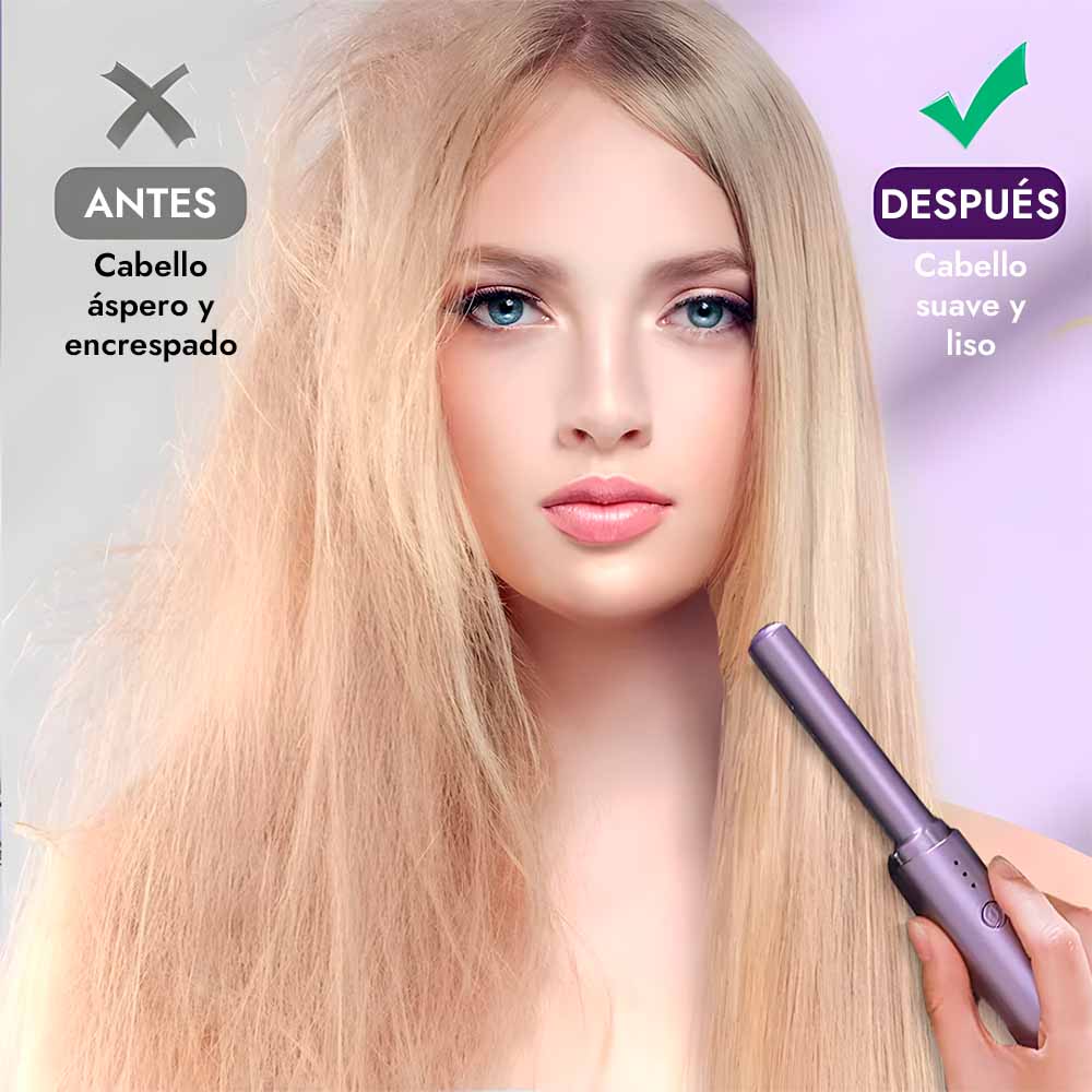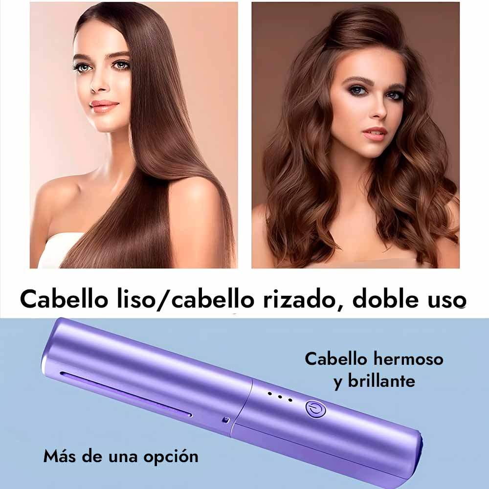 Este dispositivo 2 en 1 alisa y riza tu cabello rápidamente, con diseño inalámbrico y batería recargable para resultados profesionales en cualquier lugar.