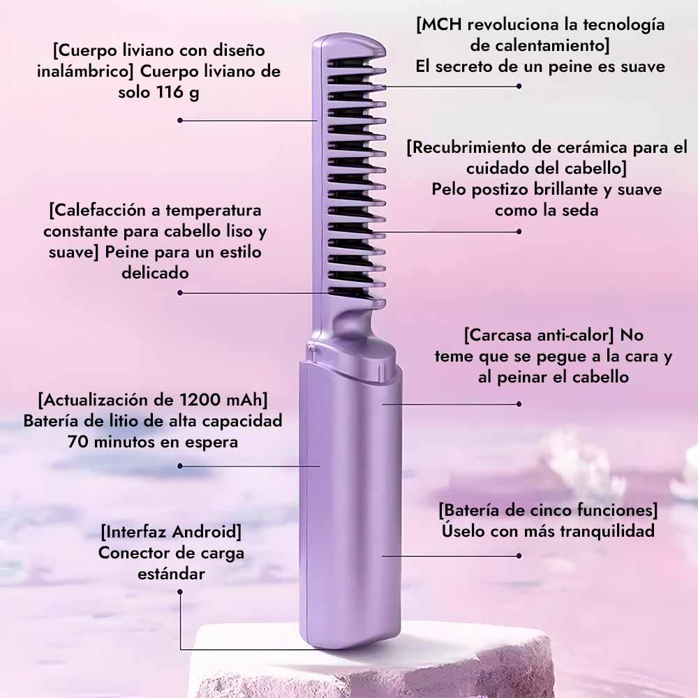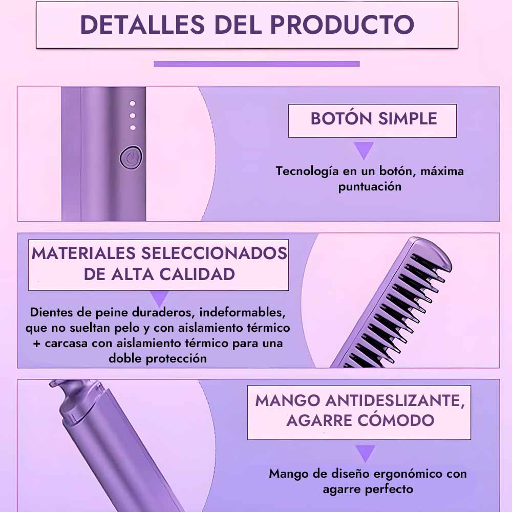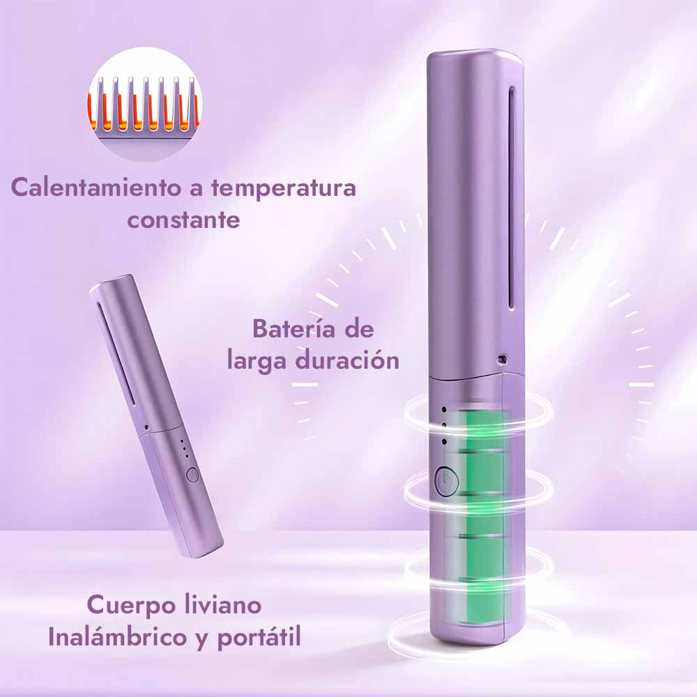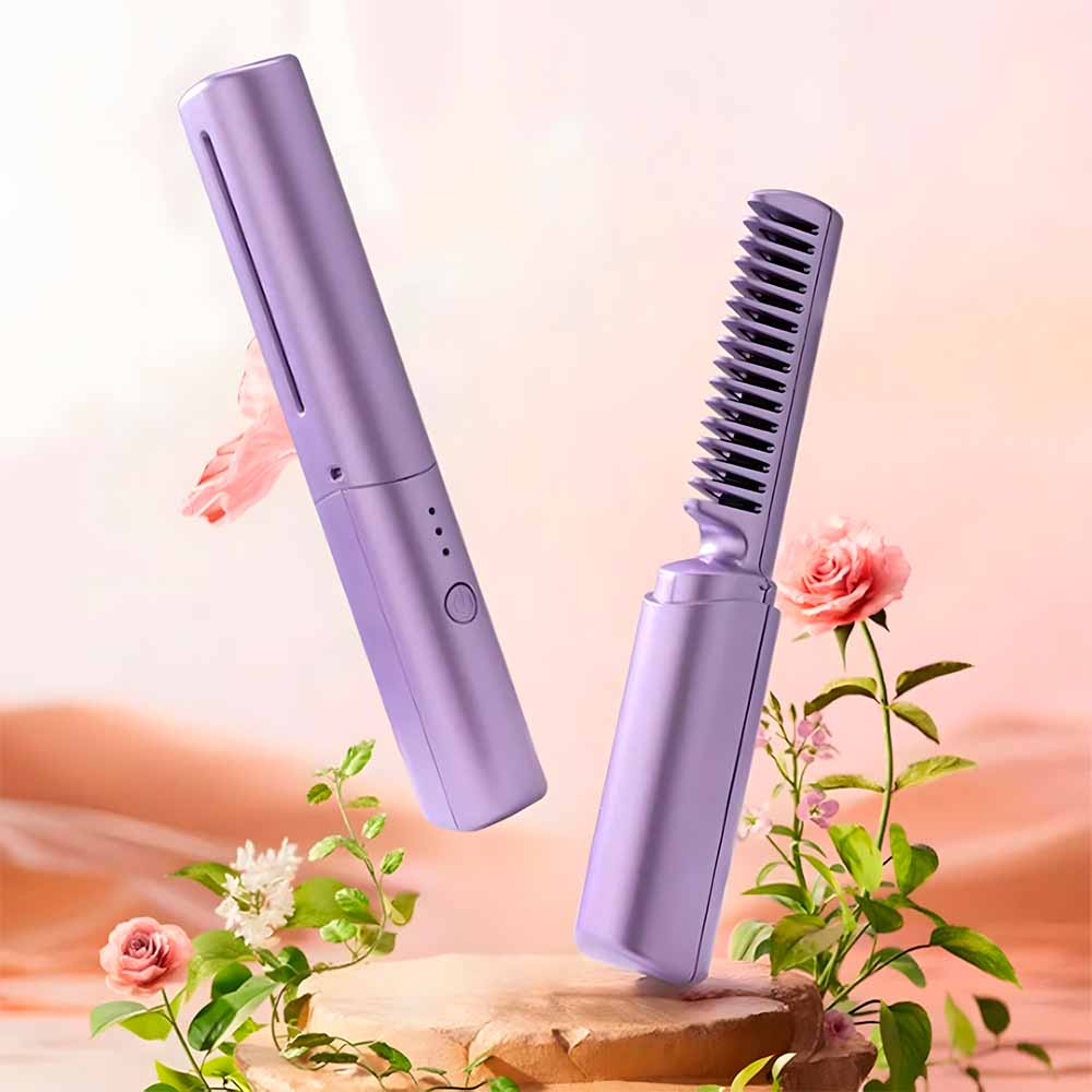 Este dispositivo 2 en 1 alisa y riza tu cabello rápidamente, con diseño inalámbrico y batería recargable para resultados profesionales en cualquier lugar.