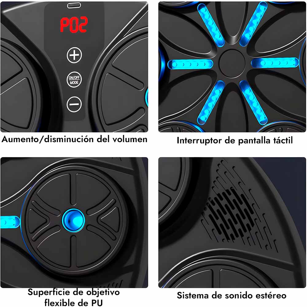 Las luces interactivas responden a tus golpes, aumentando la intensidad y mejorando tu coordinación, ritmo y experiencia de boxeo.