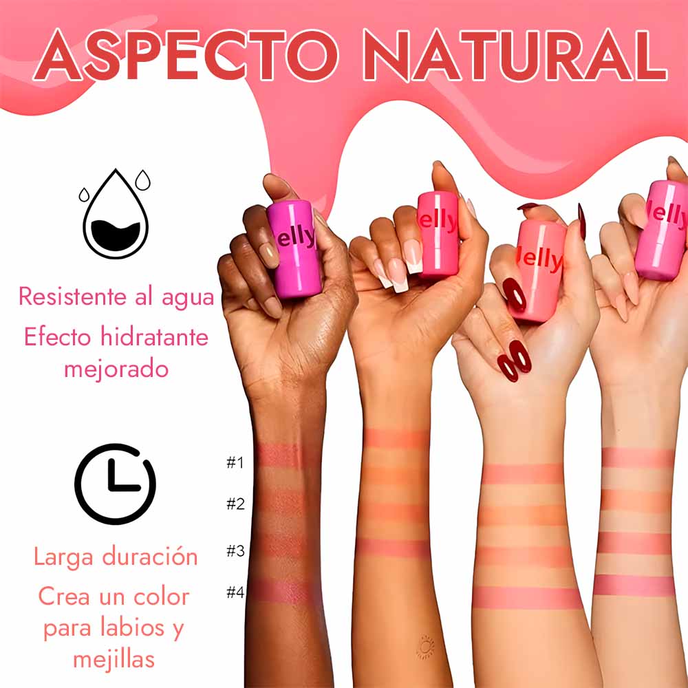 ¡Nuestro JellyGlow™ Rubor labial de gelatina es la solución! Su fórmula hidratante y colores modulables brindan un brillo natural y duradero.