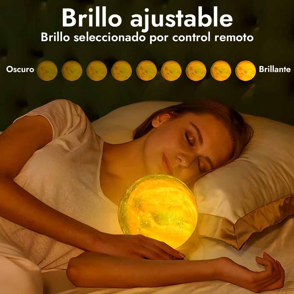Con colores vibrantes y brillo ajustable, la lámpara lunar se adapta a cualquier ocasión, desde un ambiente relajante hasta una luz energizante para fiestas.