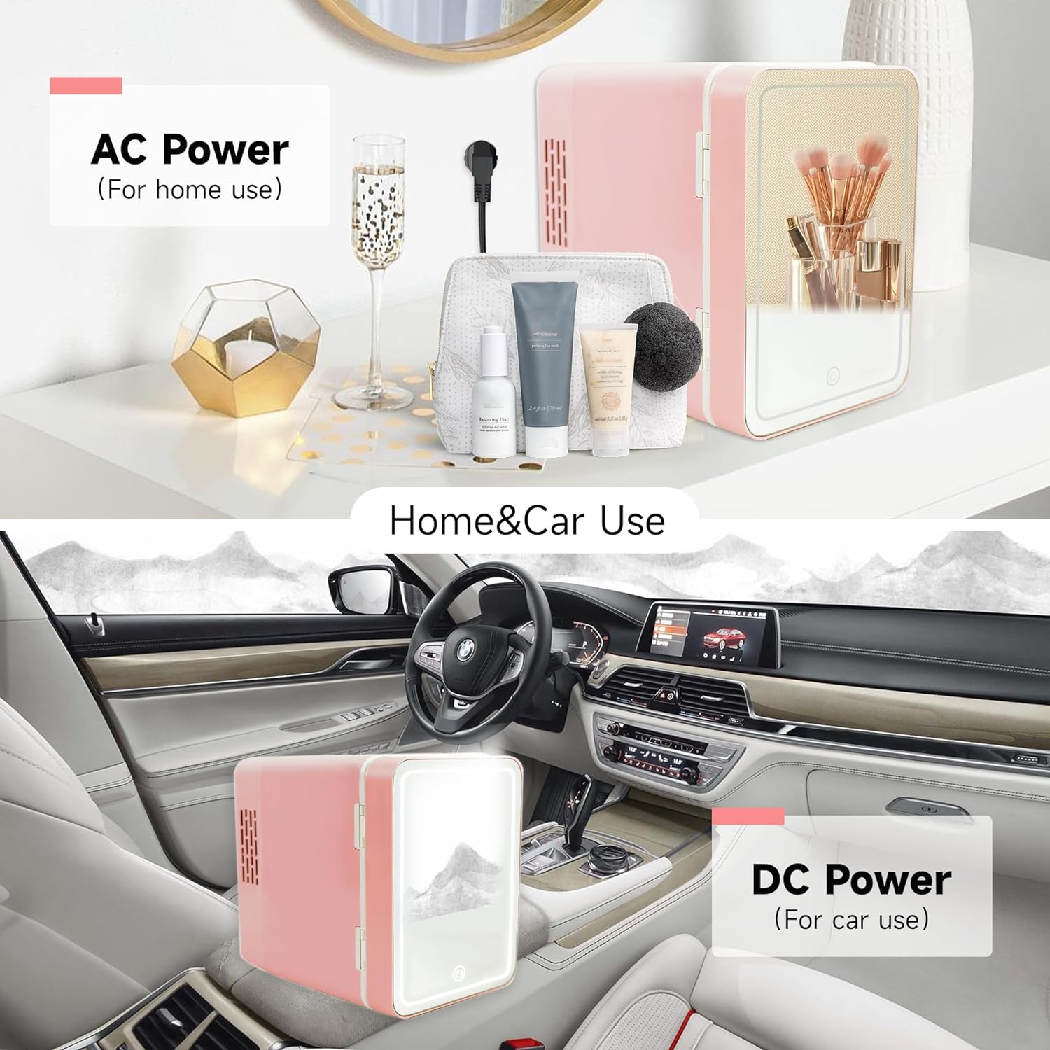 Refrigerador de maquillaje ahorra espacio: Cada niña tendrá un problema con sus productos para el cuidado de la piel. Nuestro mini refrigerador puede ahorrar espacio en tu escritorio y mantener tus productos para el cuidado de la piel almacenados en un espacio fresco para un uso prolongado.