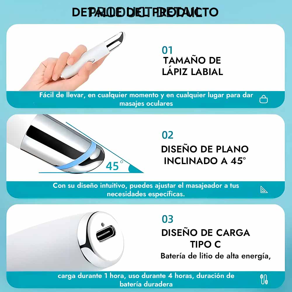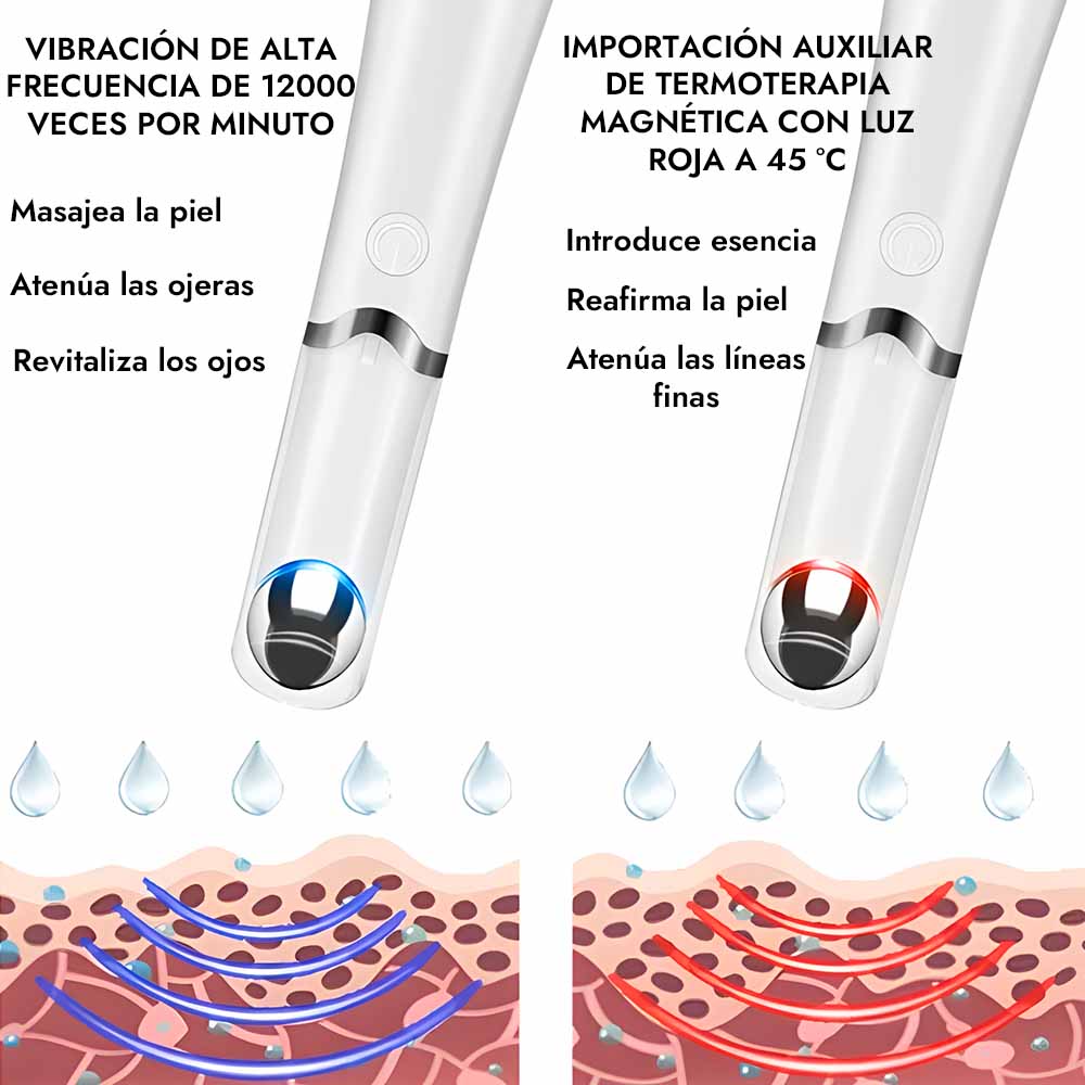 Más que un masajeador, es una herramienta de rejuvenecimiento. Su vibración suave y calor alivian tensiones, suavizan arrugas y reducen hinchazón, brindando cuidado profesional en cada uso.