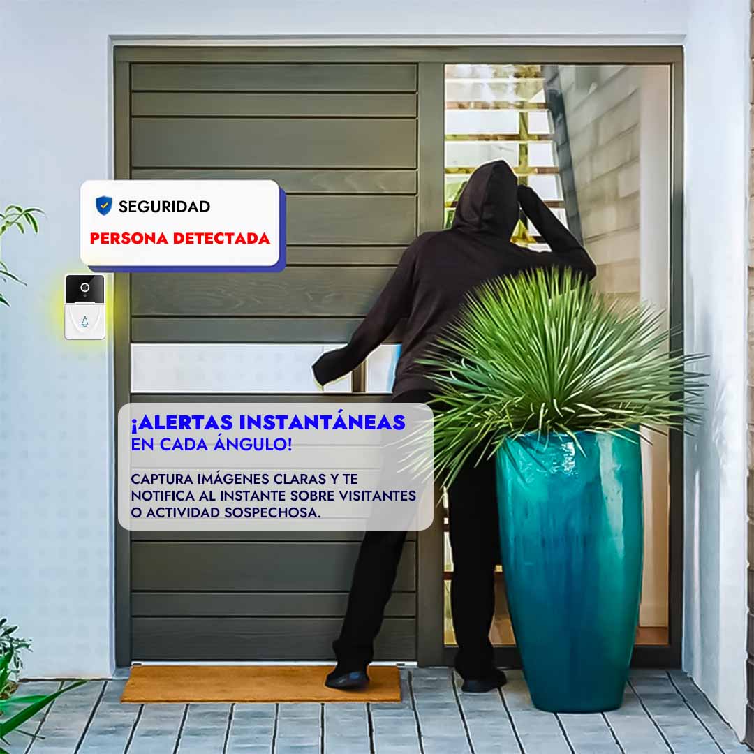 Con nuestro timbre inteligente: Controla todo desde tu móvil, disfruta de video en HD y visión nocturna y recibe alertas al instante gracias a su detección de movimiento.